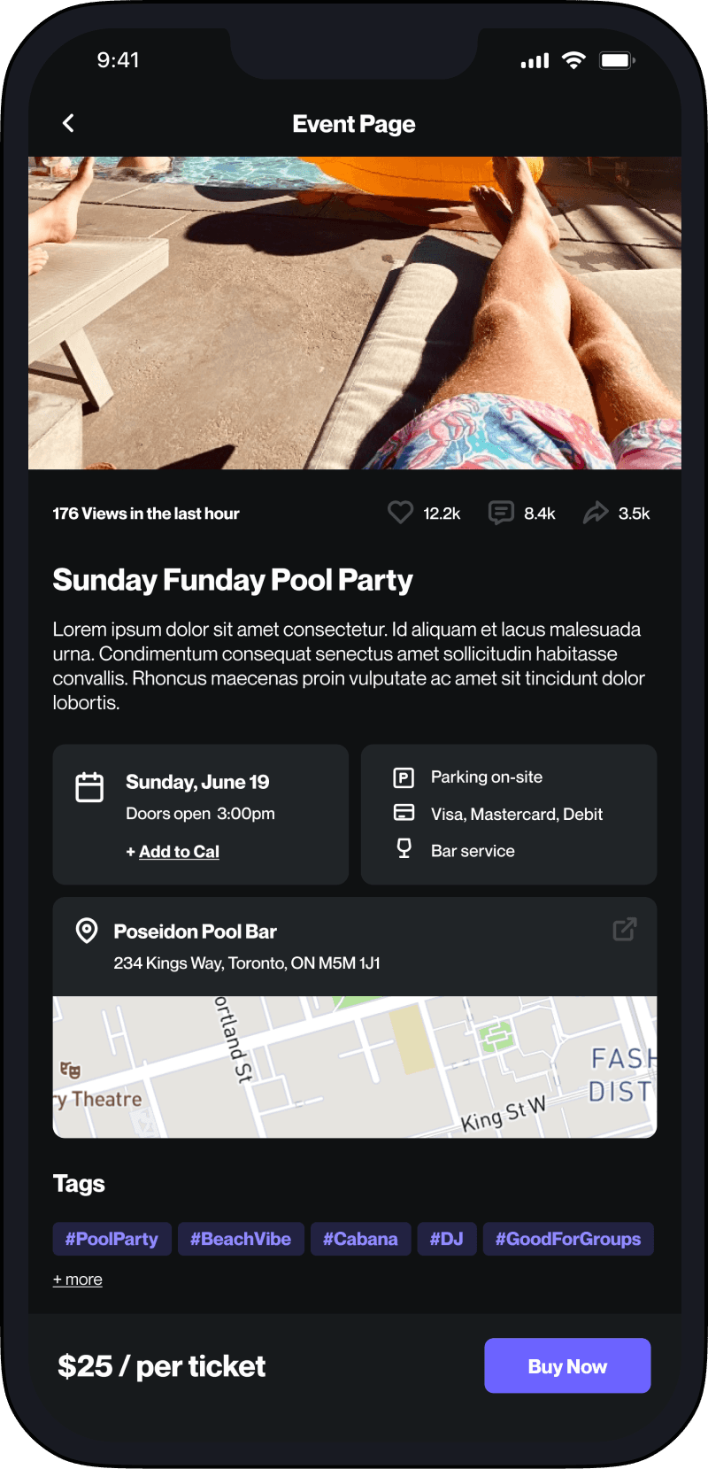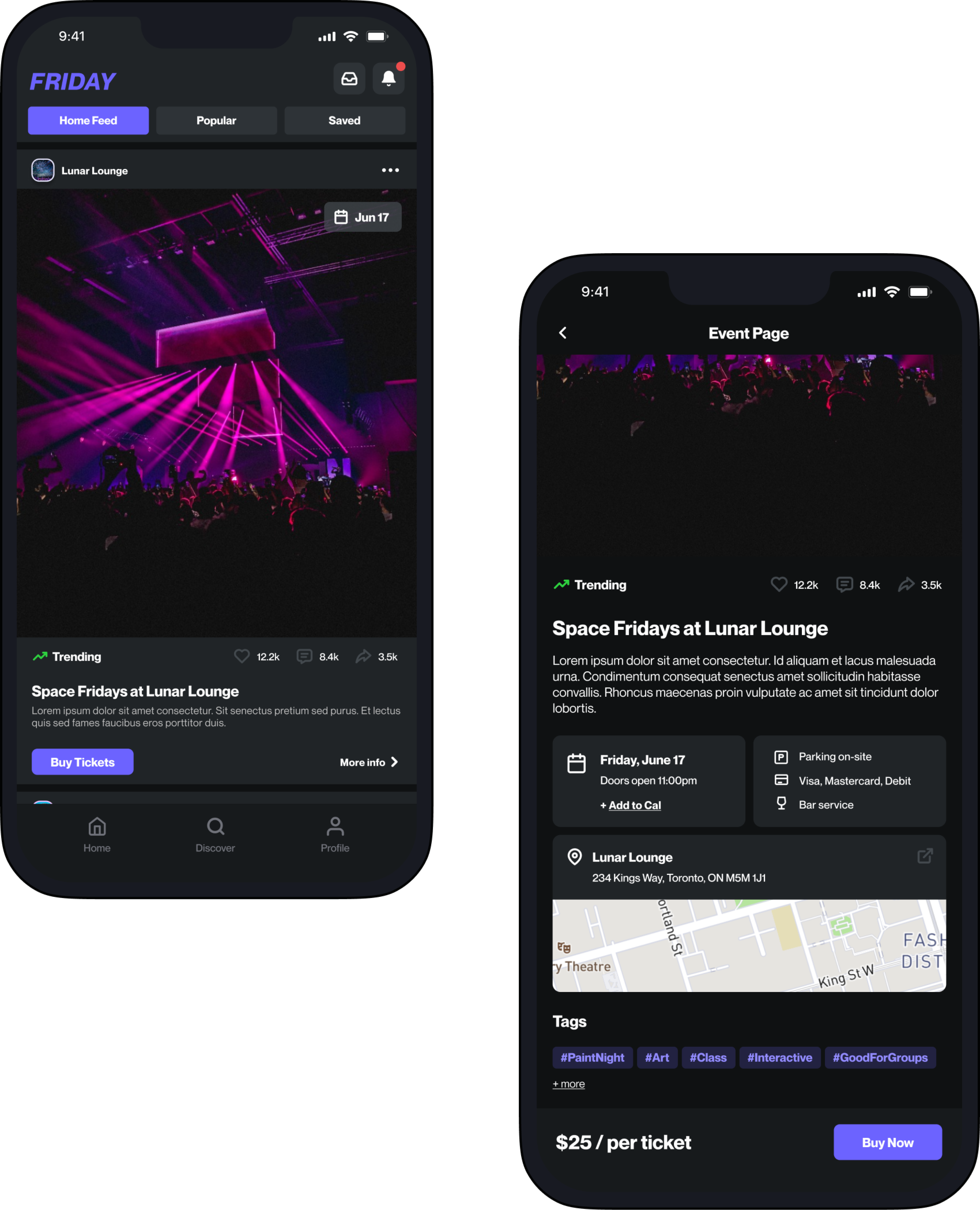 How might we provide real-time exposure of local popular events to nightlife goers and create a seamless all-in-one event experience?