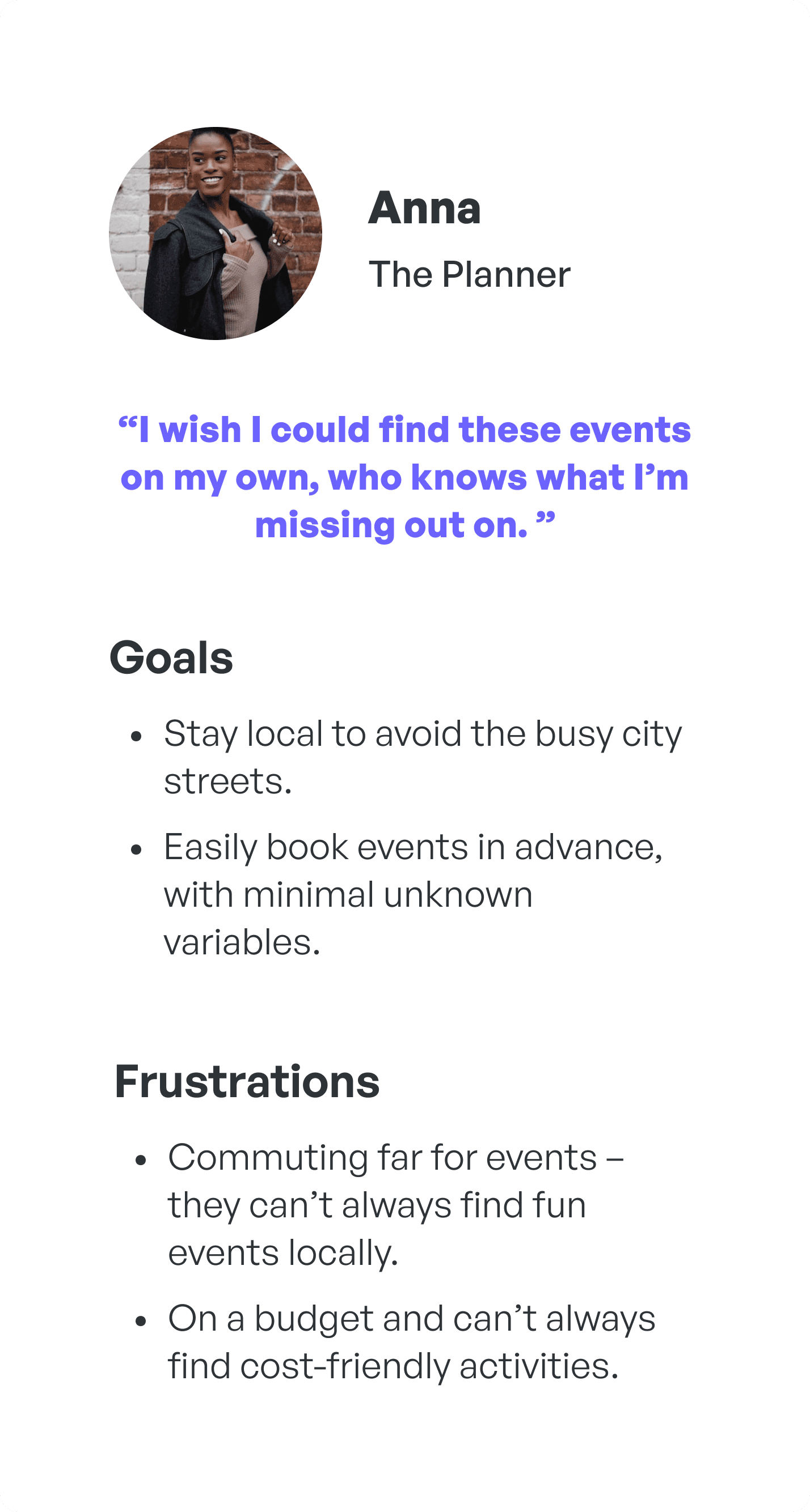 Users want to discover events happening locally so that they don’t have to travel far or incur unnecessary expenses.