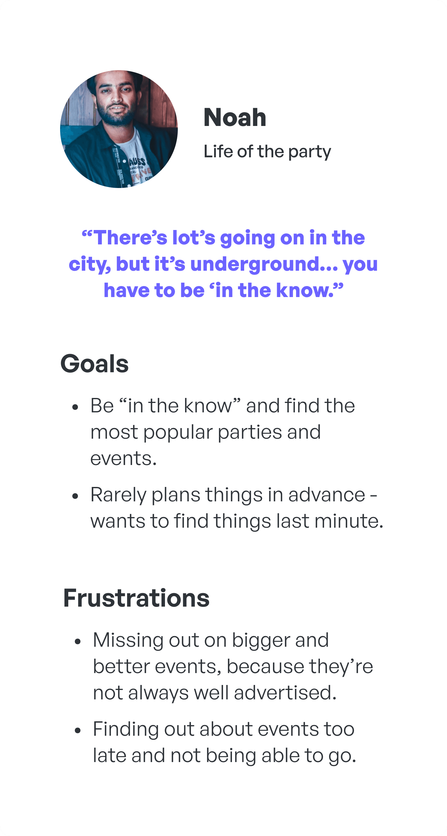 I conducted an Empathy Mapping exercise to help me empathize with the users further and gain a deeper understanding of their pain. Through this exercise, it became clear that there are at least 2 unique archetypes of young event goers.